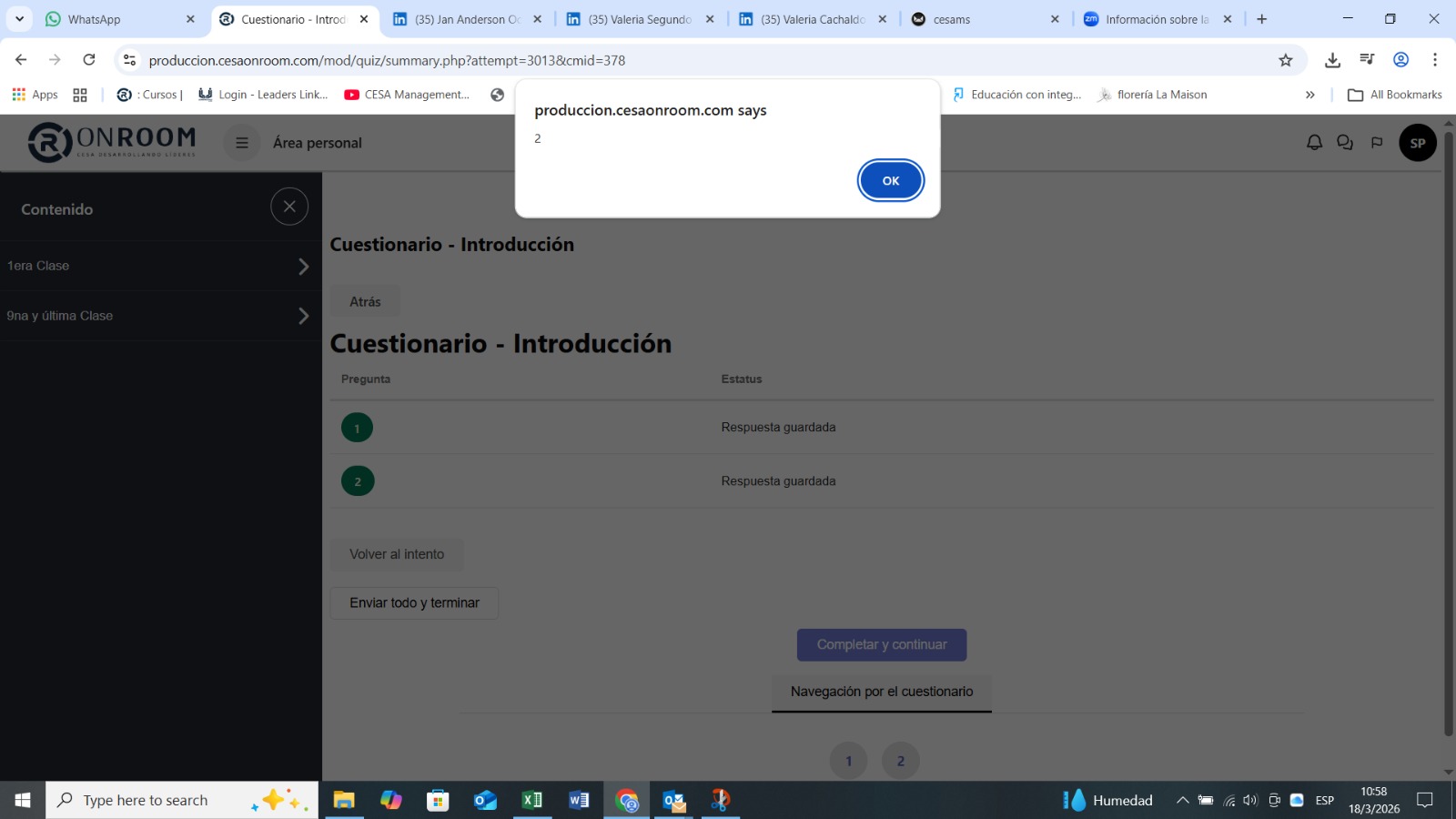 Al completar el cuestionario da un error cuando se presiona en el bot´´on "Completar y continuar"